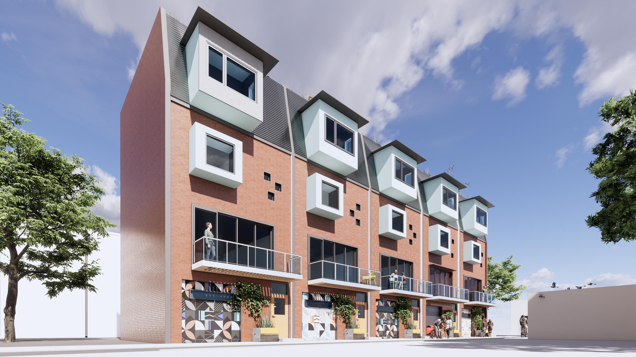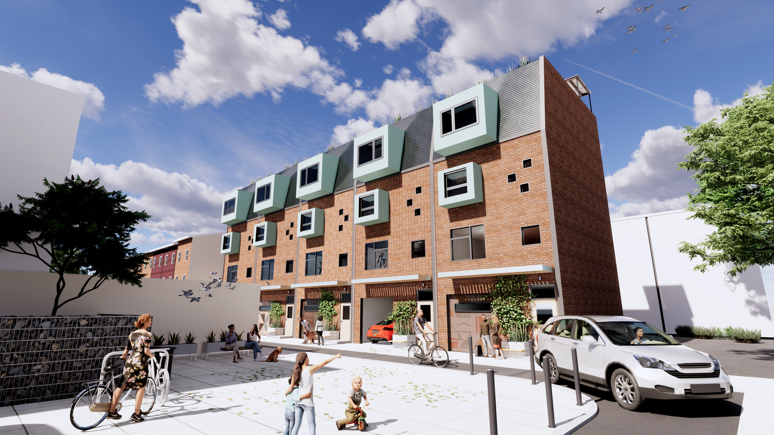 Skyplane’s second project with the Figueroa’s, a husband-and-wife development team, proposes 5 rowhomes to be built on an existing 7 lots. The project required a variance for subdivision and parking access and collaboration with Nochumson. P.C. to present the project’s goals with Skyplane to the local Registered Community Organization (RCO) and independently to the Zoning Board of Adjustments (ZBA). With the variance approved, the project moves into Design Development to ask “how to create a series of 5 contemporary rowhomes that vary as individuals while they maintain continuity as a group” - seeing these as siblings who’s DNA shows both similarities and variety - expressing a measured variety of personal characteristics across fundamental and functional facade elements is where we’re heading.