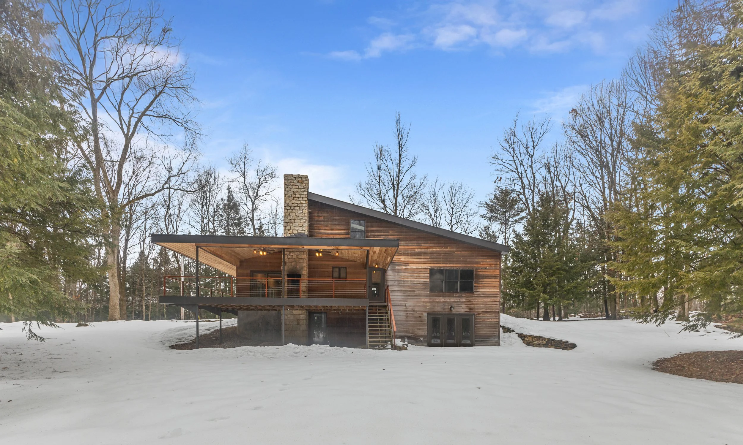 The aim of the project was to create a “timeless” piece of architecture that engenders both strong feeling of Romanticism and nostalgia of place while celebrating the simplicity of contemporary details and construction techniques - many of which were utilized to support the specific goal of “self-building” by the owner. Among the innovative construction methods of the time, circa early 2,000’s, the building features ICF’s for its basement level, a CMU core for the tower and chimney, and custom steel gusset plates to cantilever the porch from foundation walls and steel pilotis.