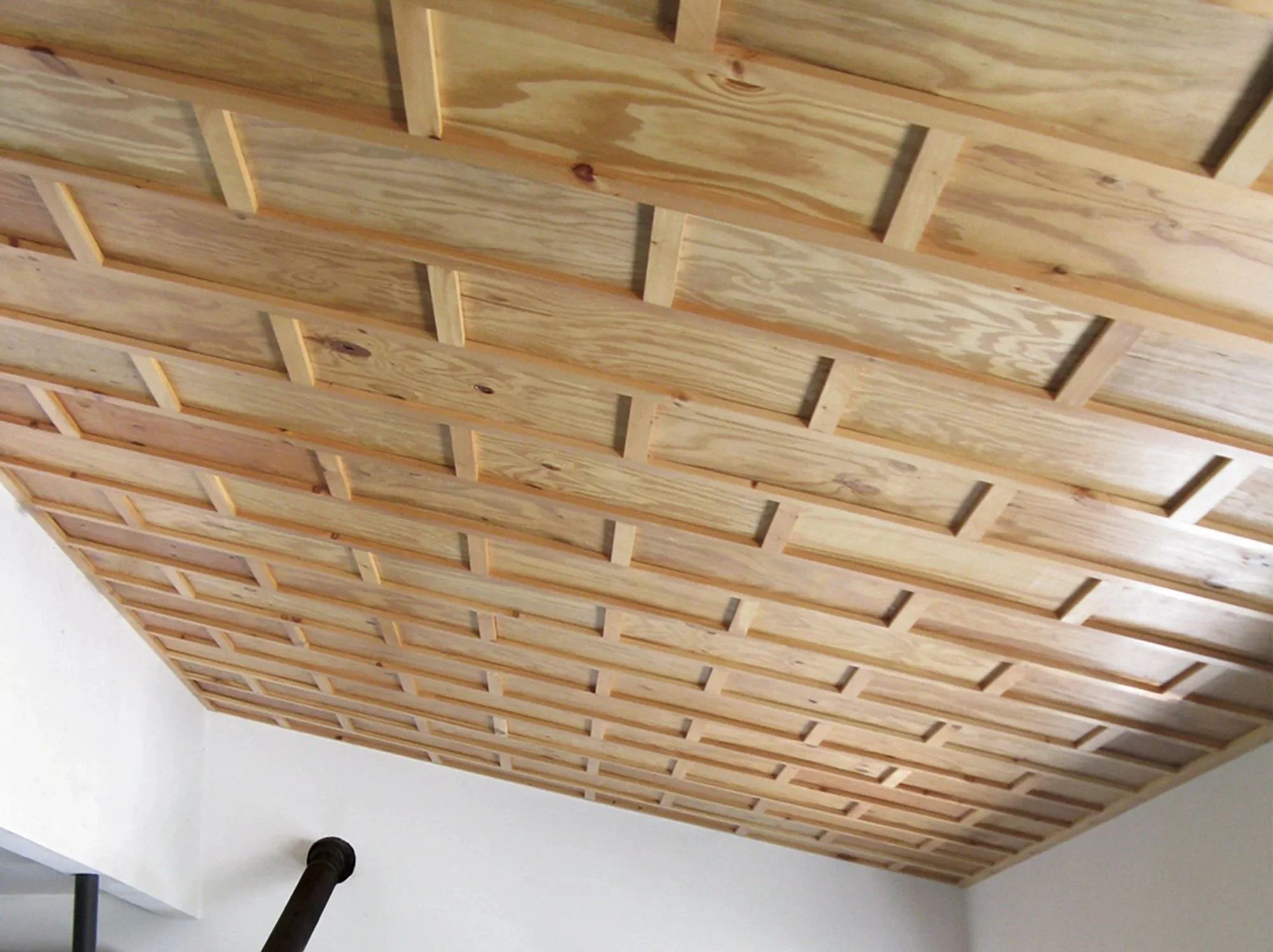 “Opportunities to salvage materials gave birth to a custom system of panelized infill between ceiling joists. At once ancient in its textile tectonic pattern language and its human scale.”